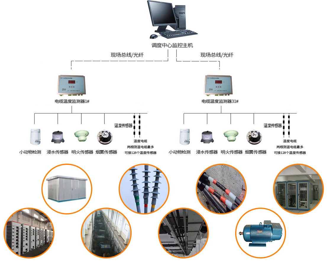 單條總線電纜可支持長達至1000米,單條測溫電纜可掛接128個 測溫傳感器